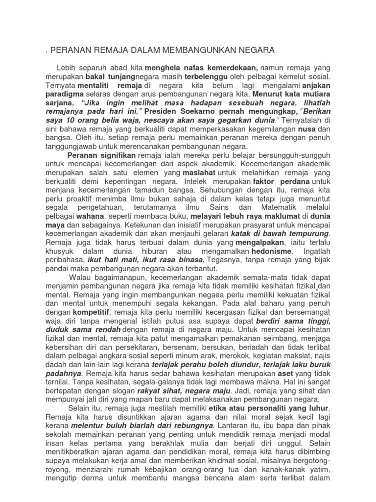 Peranan Remaja Dalam Membangunkan Negara Pdf